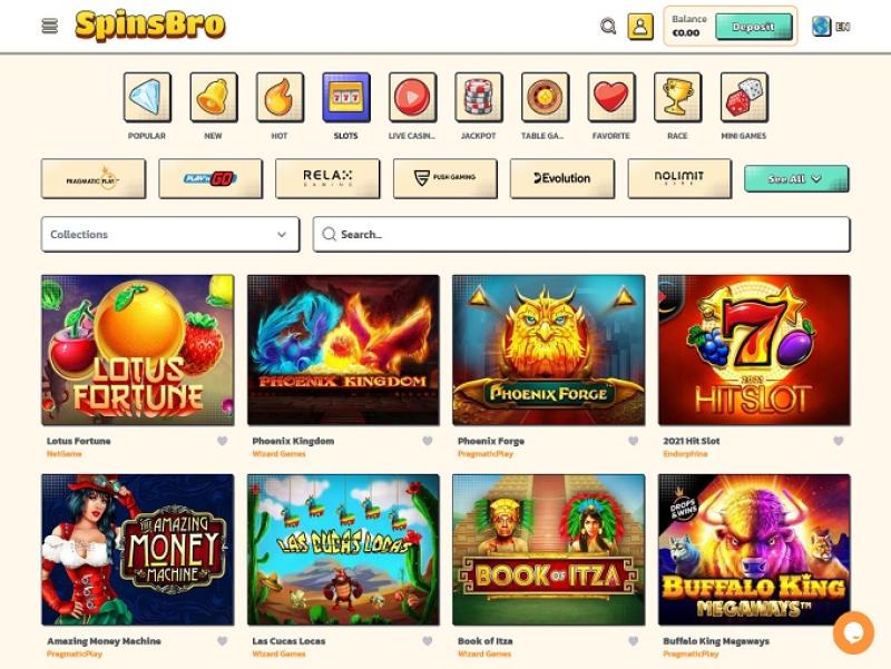 SpinsBro 匯集了業內一些最大的遊戲供應商,讓您暢玩眾多頂級老虎機遊戲。其中一些熱門遊戲包括:Push Gaming、 Pragmatic Play 、Play 'N Go、Rela Gaming、Ruby Play、Playpearls 等等。