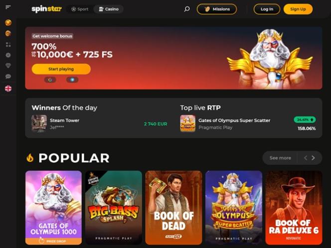 Spinstar Casino 是一家受哥斯達黎加博彩委員會監管和許可的線上賭場和體育博彩網站。該運營商主要面向來自荷蘭和希臘的玩家。賭場提供希臘語、英語和法語的本地化版本,其圖形解決方案和營造的氛圍給我們留下了深刻的印象。