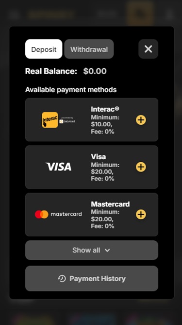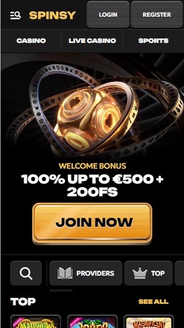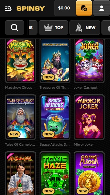 該網站還在平台左側設有垂直選單,您可以快速存取所有宣傳資料、錦標賽、VIP計劃以及遊戲類別和子類別。總而言之,Spinsy Casino 在打造完美使用者體驗方面做得非常出色,導航也十分便捷。