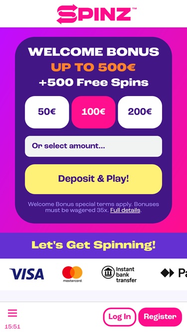 它採用輕量模式,介面友好,以亮粉色為主色調,並針對所有可用設備進行了優化,無論螢幕尺寸或類型如何。這是一個不錯的選擇,因為玩家可以在桌上工作站、最喜歡的遊戲椅或沙發上,或在旅途中享受在 Spinz 的時光。