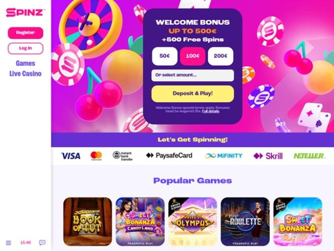 Spinz Casino 與業界知名公司合作:Evolution Gaming、NetEnt、Yggdrasil、Relax Gaming 等,為玩家提供高品質的娛樂。