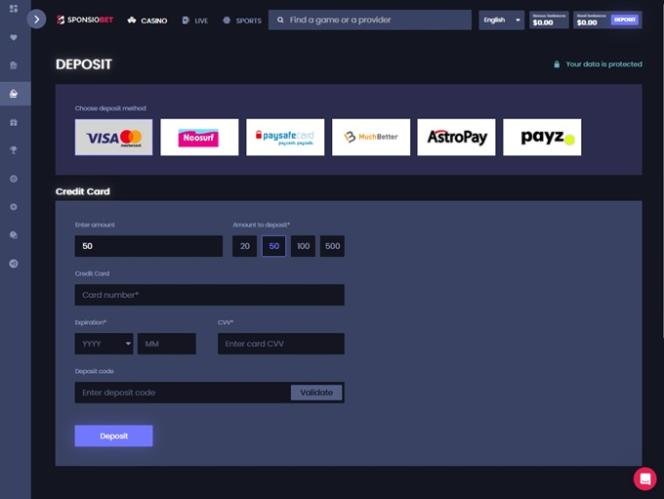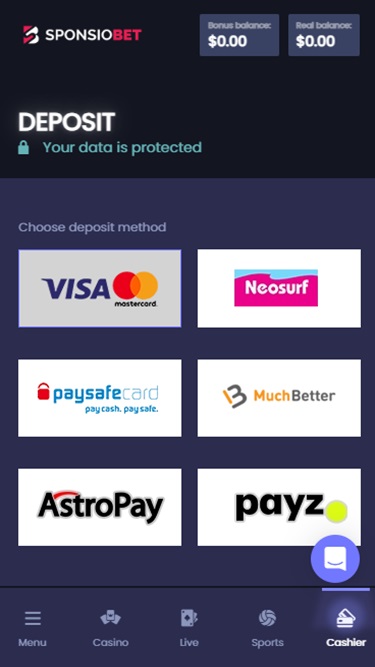 Banking銀⾏業務選項 的 SponsioBet Casino