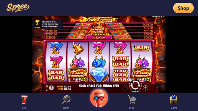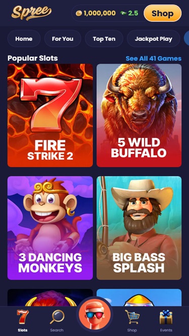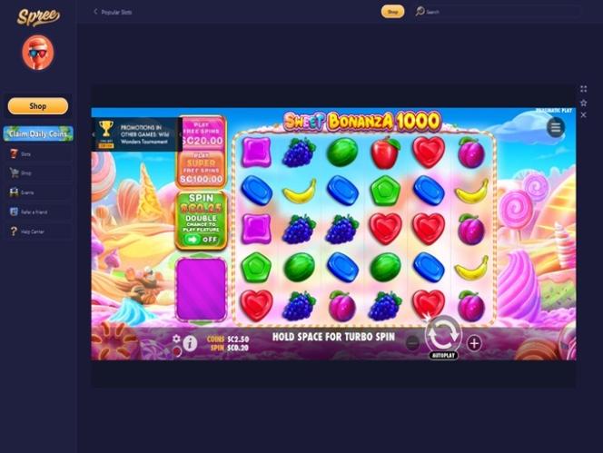 - 玩家在滿足最低提款金額和下注要求後,可以以 1 Spree Coin 兌換 1 美元的匯率兌換 Spree Coin 現金獎勵。