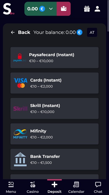 最後,在螢幕頂部,您還會看到您的錢包,其中不僅顯示您的餘額,還可以讓您只需點擊幾下即可快速充值!