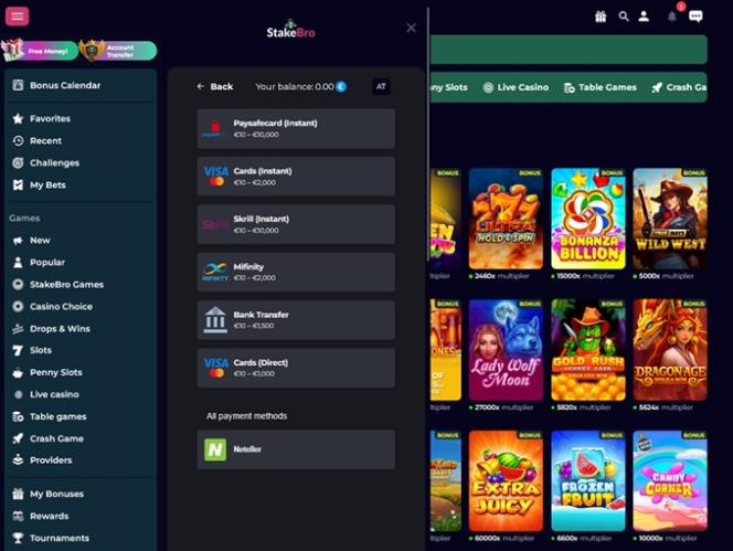 StakeBro是一家支援加密貨幣的線上賭場,持有庫拉索島博彩牌照,提供種類繁多的賭場遊戲。從輪盤、百家樂、撲克等桌上遊戲,到老虎機、碰碰車遊戲、真人賭場遊戲等等,應有盡有。