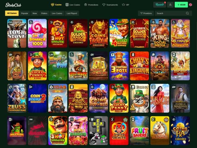 正如我們之前提到的, StakeClub 與許多信譽良好的軟體工作室合作,例如 Microgaming, Net Entertainment, Real Time Gaming, BetSoft, 1x2gaming, Big Time Gaming, Evolution Gaming, Ezugi, Habanero Systems, Novomatic, Play'n GO, playson, Quickspin, Relax Gaming, Thunderkick, Endorphina, Wazdan, Pragmatic Play, Nolimit City, Red Tiger Gaming, Booongo, Felix Gaming, Red Rake Gaming, Skillzzgaming, Belatra Games, Fantasma Games, FUGA Gaming, Platipus Gaming, Triple Edge Studios, BGAMING, Northern Lights Gaming, Evoplay, Stormcraft Studios, Switch Studios, OneTouch, Electric Elephant Games, Pocket Games Soft, Triple PG, All41 Studios, CQ9 Gaming, Mascot Gaming, Gameburger Studios, Pulse 8 Studios, Neon Valley Studios, SpinPlay Games, Mancala Gaming, Real Dealer Studios, Buck Stakes Entertainment, Caleta Gaming, Games Global, Reevo, Blueprint Gaming, Greentube, Push Gaming, Tom Horn Gaming, Wager Gaming, Iron Dog Studio, Foxium, Storm Gaming Technology, PearFiction Studios, Wild Streak Gaming, Slingshot Studios, Fortune Factory Studios, 4ThePlayer, AvatarUX, Crazy Tooth Studio, ReelPlay, Alchemy Gaming, Snowborn Games, Hacksaw Gaming, Max Win Gaming, Gold Coin Studios, Gamzix, Slotmill, Dragon Gaming, Peter And Sons, Eurostar Studios, Aurum Signature Studios, Onlyplay, Dragoon Soft, Area Vegas, Winfinity, 3 Oaks Gaming, Wishbone Games, Spribe, Jili, Circular Arrow, HammerTime Games, Four Leaf Gaming, Nailed It! Games, Neko Games, Reel Kingdom, Oros Gaming, Popiplay, Light & Wonder, Live88, Playzia, VoltEnt, Kitsune Studios and Turbo Games 。