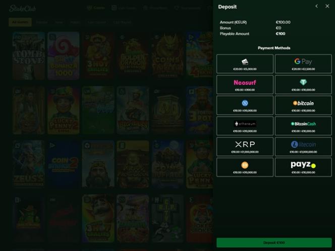 要加入 StakeClub 社區,您需要註冊一個新帳戶。註冊過程非常簡單快捷,您只需填寫標準的註冊資訊並同意賭場的條款和條件以及隱私權政策即可。註冊新帳戶後,您即可存取玩家控制面板,並開始探索賭場豐富的遊戲庫。這些遊戲由業內頂尖的線上賭場軟體開發商提供。
