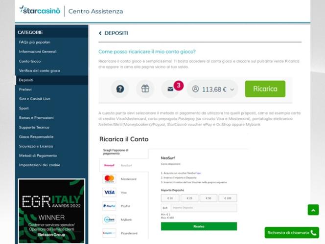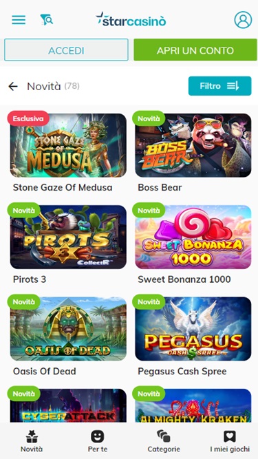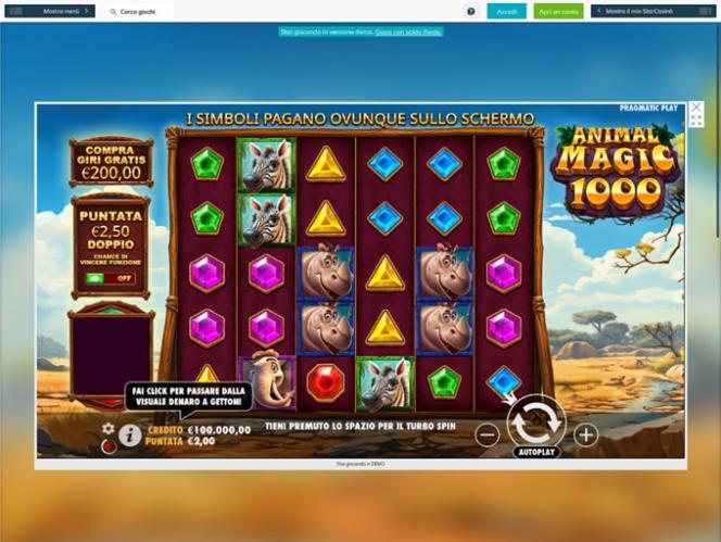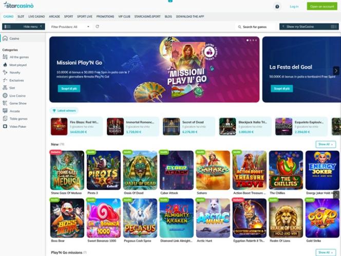 Star Casino 是一家自 2012 年起營運的線上賭場,專注於義大利博彩市場。賭場採用了 Net Ent 的軟體,擁有合理的投注條件和快速的賠付時間,如果您身處義大利博彩市場,Star Casino 將是您的理想之選。