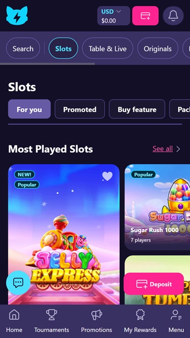 豐富的遊戲庫絕對是他們的一大賣點。如果您是老虎機愛好者,這裡匯集了許多知名及小型遊戲供應商的大量遊戲,包括 Megaways、Hold and Win 和 Cluster Pays 等經典老虎機遊戲。如果您想快速體驗遊戲樂趣,也可以選擇 Bonus Buy 老虎機。此外,這裡還有桌上遊戲、真人遊戲以及一些獨特的碰撞式和即時遊戲選項。如果您是平台新手,或者只是想試玩一下遊戲,您可以隨時免費暢玩。