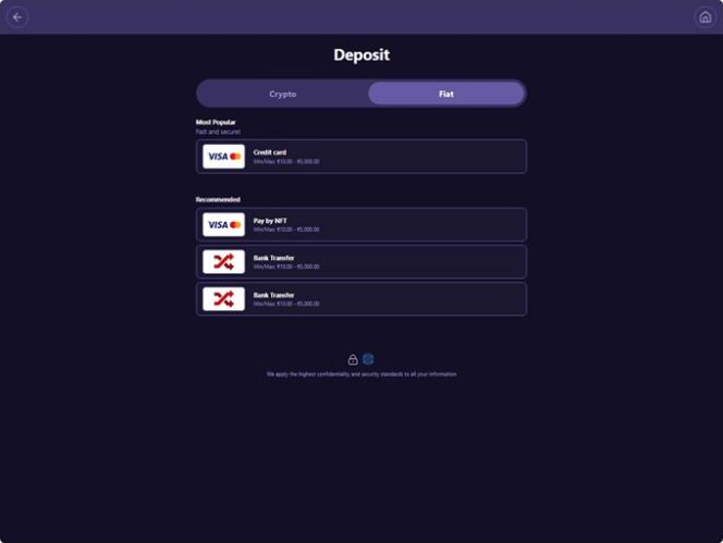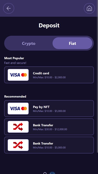 雖然該遊戲網站支援所有主流加密貨幣,但您仍然可以使用法定貨幣和傳統支付方式,例如信用卡和銀行轉帳。 StealthBet 甚至提供便捷的法定貨幣兌換加密貨幣通道,讓玩家可以直接在網站上將法定貨幣兌換成加密貨幣。