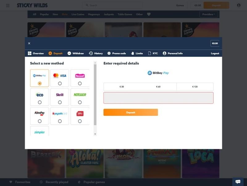 下面您將看到各種銀行選項,包括 Sticky Wilds 的存款和提款選項。