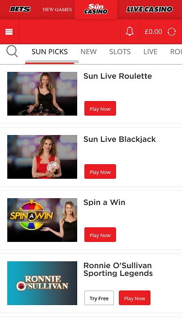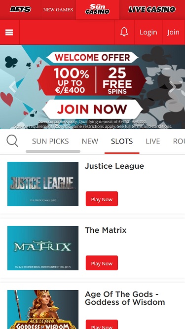 Sun Bets Casino 由 Playtech提供支持,網站的遊戲透過基於網頁的即時遊戲平台提供,可直接透過您的網頁瀏覽器載入。該賭場還支援行動遊戲,這意味著您可以在智慧型手機或平板電腦上暢玩。