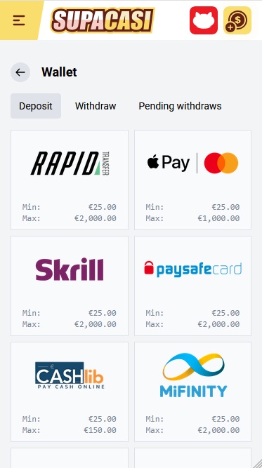在撰寫此評論時,Supacasi Casino 尚未提供忠誠度計劃。