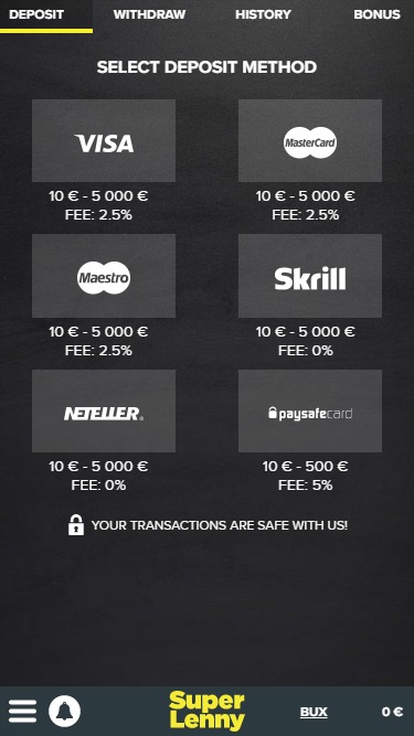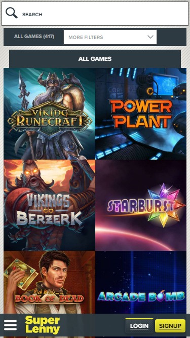 SuperLenny Casino 由 Microgaming, Net Entertainment, BetSoft, Big Time Gaming, ELK Studios, Genesis Gaming, lightningboxgames, Play'n GO, Quickspin, Rabcat, Thunderkick, Yggdrasil, Pragmatic Play, Nolimit City, IGT, Games Global, 2by2 Gaming, Ash Gaming, bluberi, Leander Games, NextGen and Just For The Win提供支持,其遊戲透過基於網頁的即時遊戲平台提供。對於希望透過智慧型手機和平板電腦進行遊戲的用戶,我們也支援行動端遊戲。