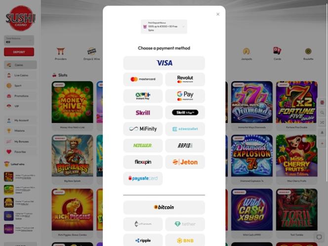 Sushi Casino 提供誘人的促銷計劃、豐富的付款選項、豐富的遊戲庫等等。所有這些都預示著玩家可以在這裡享受高品質的娛樂體驗,所以讓我們更深入地了解遊戲優惠!
