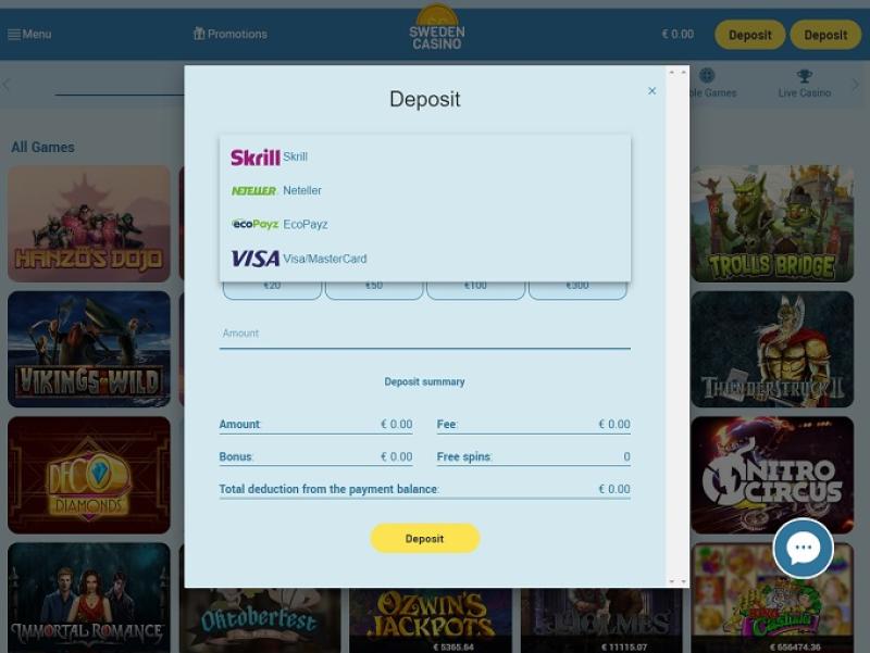 瑞典賭場由 Microgaming, Net Entertainment, BetSoft, Evolution Gaming, Ezugi, iSoftBet, Play'n GO, Yggdrasil, Endorphina, GameArt, Pragmatic Play, Games Global and NYX Interactive提供支持,其遊戲由瀏覽器內建的即時遊戲平台提供。這意味著無需下載任何軟體,所有遊戲均可在您的網頁瀏覽器中運行。此外,該賭場還支援行動網站,讓玩家可以透過智慧型手機和平板電腦進行遊戲。