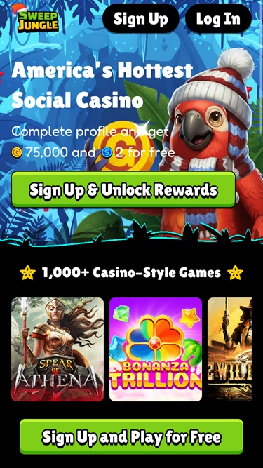 Sweep Jungle是一家功能齊全的社交賭場,歡迎美國玩家(部分州受限,詳情請參閱條款和條件),致力於透過提供豐富的賭場風格線上老虎機遊戲以及眾多精彩的促銷活動、賽事和獎金,為玩家打造卓越的遊戲體驗。玩家無需購買即可享受品牌提供的所有服務。