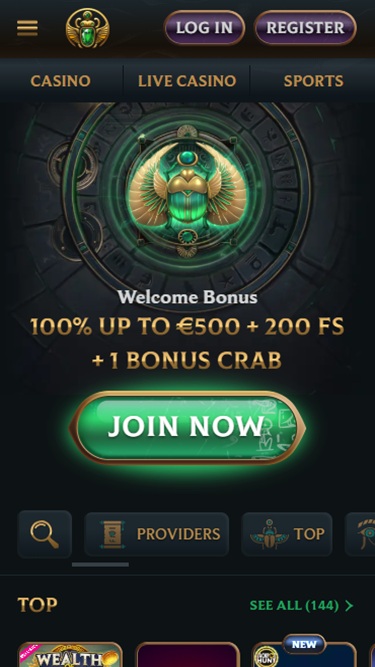 賭場平台的設計靈感來自埃及文化,並緊跟著最新的iGaming潮流;其豐富的博彩遊戲庫囊括了JetX、Plinko、Balloon Run、Blocks Dare2win、Happy Sheep、Diamonds of Majesty、Hot Keno、Bingo 90、Alien Hunter、Fishing War等熱門遊戲,以及其他現代遊戲。這家支援加密貨幣的賭場還提供各種精彩的促銷活動,包括迎新獎金、會員計畫、錦標賽等等。