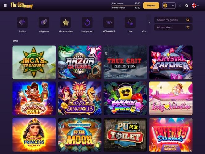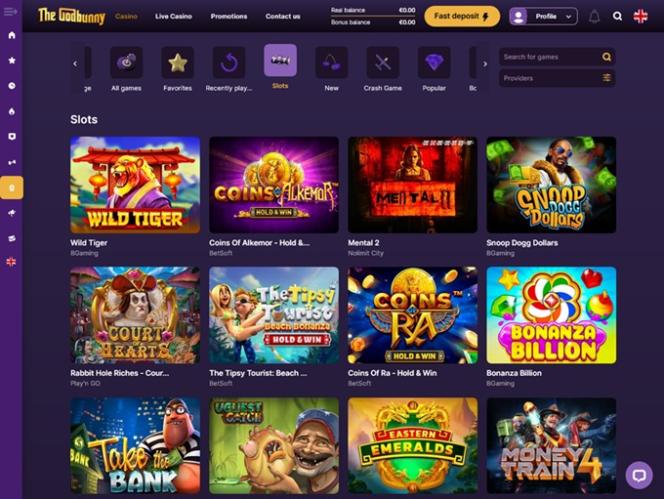 老虎機愛好者在 Godbunny 賭場一定會玩得不亦樂乎,因為他們有海量單臂強盜機可供選擇。這裡最受歡迎的遊戲包括Shining Crown、Crazy Monkey、The Treasures of Aztec、Supreme Hot、Sun of Egypt 2 Hold and Win 和 Royal Coins Hold and Win 。