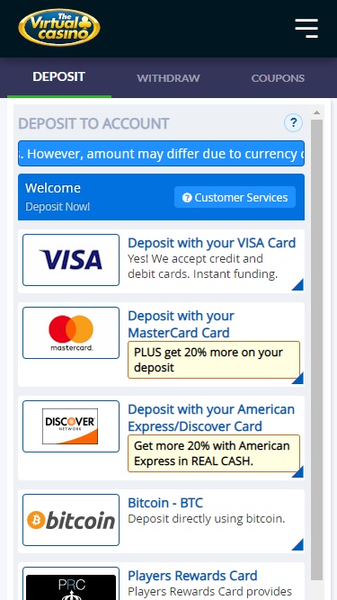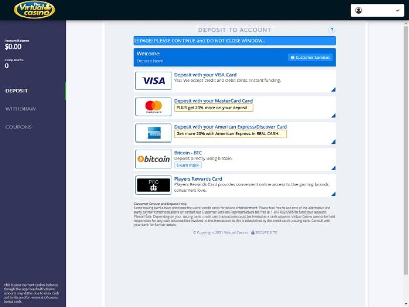 虛擬賭場由 Real Time Gaming and Spinlogic Gaming提供支持,您可以透過可下載的軟體以及基於網路的平台存取賭場。Baccarat