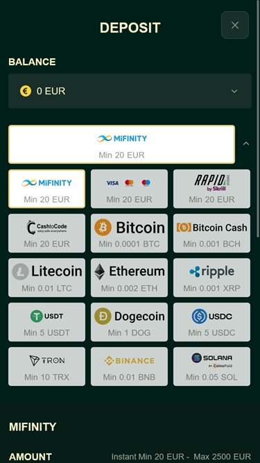 說到遊戲選項,您可以盡情探索種類繁多的賭場遊戲。遊戲庫內容豐富,幾乎涵蓋了您所需的所有主流遊戲類型和類別,包括真人荷官遊戲、桌面遊戲、線上老虎機以及創新的即時崩潰遊戲。遊戲種類繁多,總是能找到新玩法。