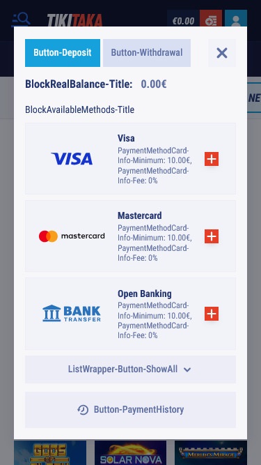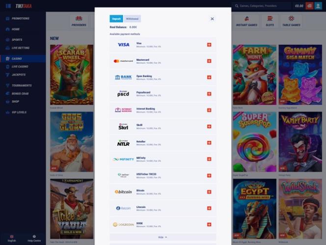 Banking銀⾏業務選項 的 TikiTaka Casino