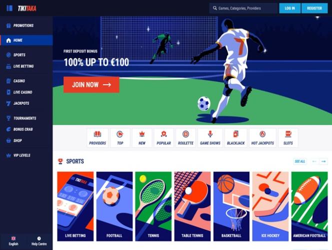 近年來,我們看到許多線上賭場都採用扁平化、極簡主義的設計,TikiTaka 賭場也不例外。設計師們投入了大量精力,白色、藍色和紅色的配色方案突出了所有必要的頁面和部分,讓玩家在導航方面不會遇到任何問題。一切都快速回應,我們對此表示讚賞。