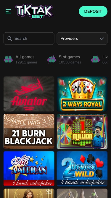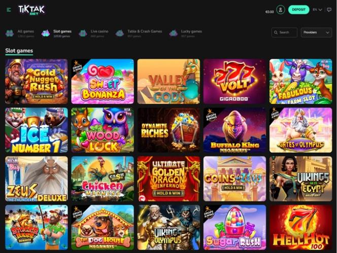 賭場軟體供應商,例如Evolution Gaming、Ezugi、Habanero Systems、Media Live、Net Entertainment、Playtech、Quickspin、Spinomenal以及其他 iGaming 公司,為線上賭場營運商提供高品質的內容。現代玩家都知道,優秀的 iGaming 品牌不僅致力於提供經典賭場遊戲,還致力於提供創新的遊戲選項和新遊戲,而 TikTak Bet 就是其中之一。