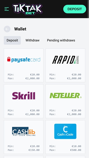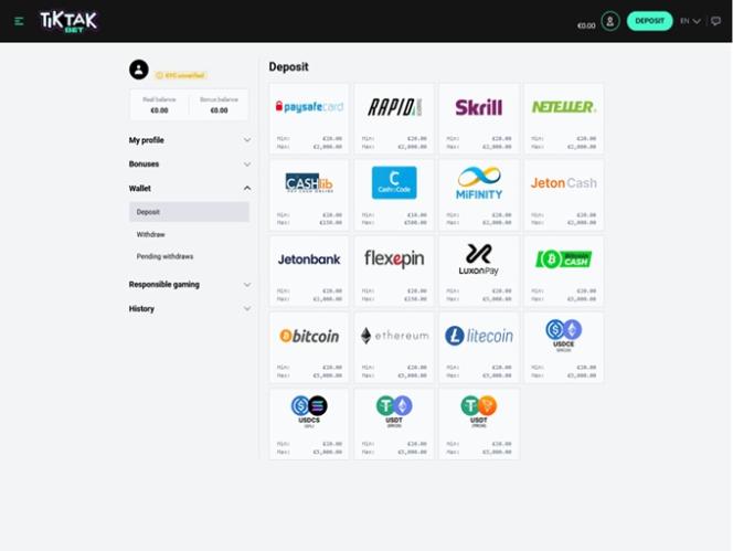 TikTak Bet 是一個極具吸引力的體育博彩網站和線上賭場,面向來自加拿大、奧地利、德國和芬蘭的客戶。它已獲得卡納瓦克博彩委員會 (Kahnawake Gaming Commission)的許可和註冊,是您絕對值得一試的合法線上賭場之一!它給我們留下了良好的第一印象,我們即將與您分享我們的發現,敬請期待!