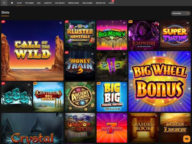 遊戲庫囊括了Evolution Gaming 、 Ezugi 、 NetEnt 、 Relax Gaming 、 Nolimit City 、 Fantasma Games和Big Time Gaming等知名軟體開發商,以及Inspired、Atomic Slot Lab 和 Felt Gaming 等眾多其他小型工作室的遊戲。這裡有許多優質遊戲可供探索,其中一些甚至被認為是最佳之作。