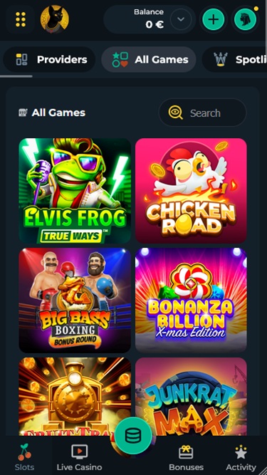 該網站提供英語和德語本地化版本,並提供非常直觀的選項,包括搜尋功能。如果您想尋找特定遊戲,可以在瀏覽欄位中輸入遊戲名稱,也可以按提供者名稱瀏覽可用的遊戲。您也可以從下拉式選單中選擇軟體開發商的品牌。