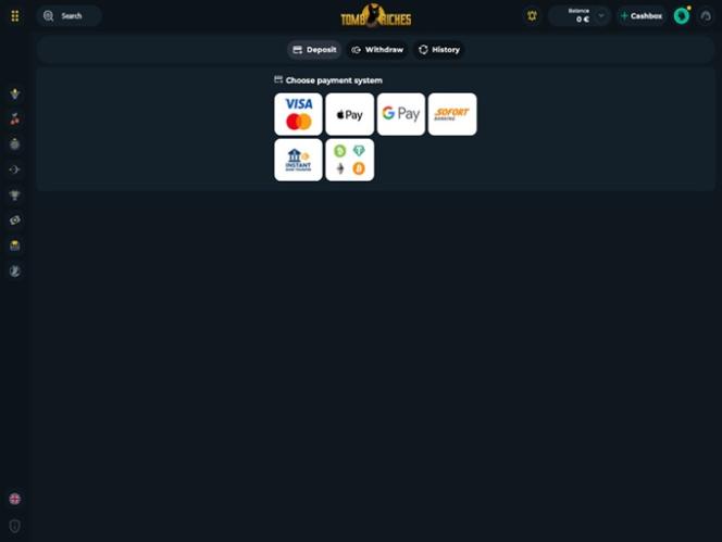 Banking銀⾏業務選項 的 TombRiches Casino