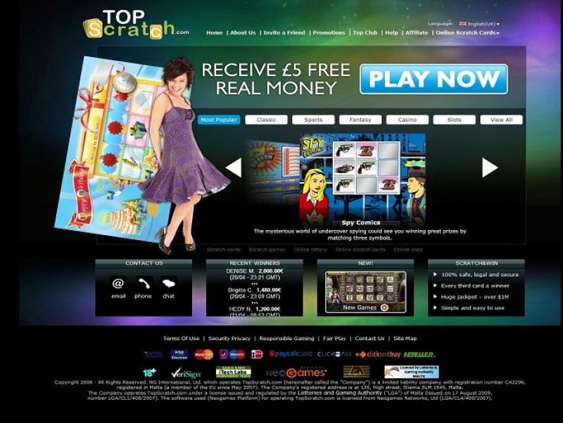 TopScratch 賭場是一家線上博彩網站,由 iGlobalMedia Limited 擁有,並由 Aragon International Limited 經營。賭場成立於 2005 年,以刮刮卡遊戲起家。多年來,該網站一直堅持運營,至今仍為客戶提供刮刮卡以及其他賭場遊戲。 TopScratch 的賠付時間和獎金條款合理,如果您是虛擬刮刮卡愛好者,絕對值得考慮。賭場資訊