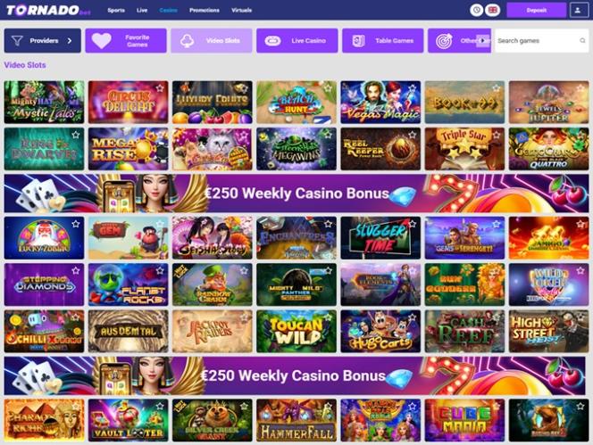 Evolution、NetEnt、Blueprint、 iSoftBet等品牌的傑作都收錄於 TornadoBet 的庫中。這意味著玩家不僅可以找到豐富的老虎機遊戲,還能找到種類豐富的真人荷官和桌遊。
