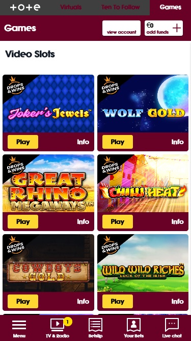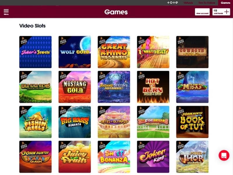Totesport 賭場由 Barcrest, Pragmatic Play, IGT, Wizard Games, Ash Gaming, Blueprint Gaming, Pariplay, Inspired Gaming, Reel Time Gaming, Wild Streak Gaming, RubyPlay and Lucksome Gaming提供支持,為玩家提供豐富的遊戲選擇。賭場採用網頁平台,您可以透過網頁瀏覽器直接存取。
