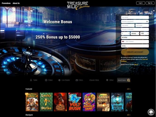 Treasure Mile 賭場是一家線上博彩網站,於 2010 年開幕。該賭場由 Genesys Technology Group 擁有和經營,該公司旗下還經營 Mandarin Palace、Grand Eagle 和 Wizbet 等博彩網站。 Treasure Mile 的賭客們對其豐富的遊戲庫讚不絕口,但也對其透過 Moneybookers 和 Neteller 存款的獎金限製表示不滿。賭場資訊