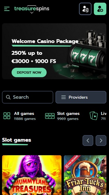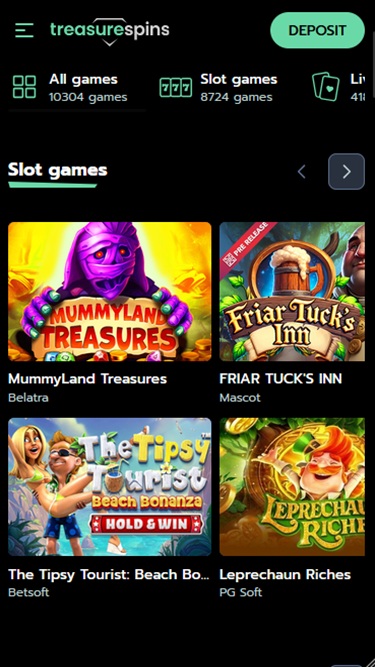 乍一看,Treasure Spins 除了擁有龐大的遊戲庫外,還提供了溫馨的氛圍和優質的線上博彩體驗。當然,還有超值的促銷優惠!