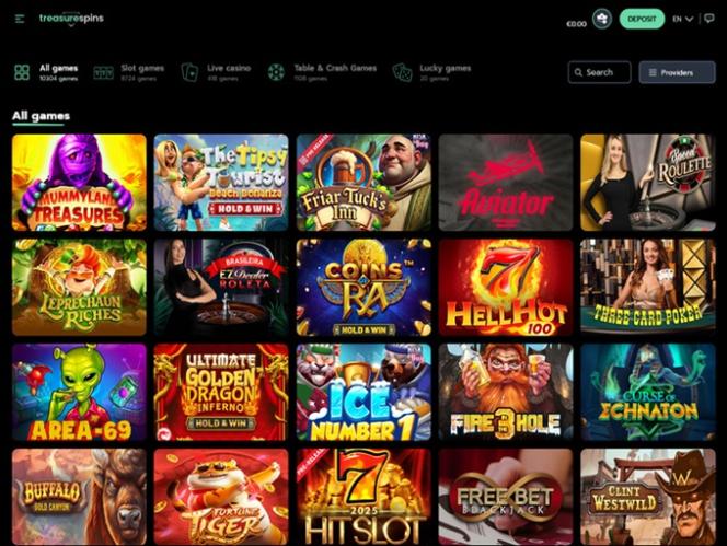 Treasure Spins Casino 的遊戲庫包含數千款引人入勝的線上老虎機遊戲,老實說,對於擁有如此品牌名稱的賭博場所,我們並沒有期待太多。