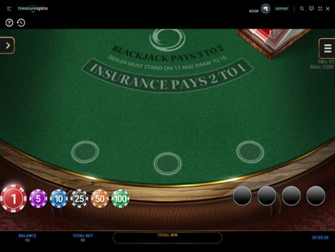 Treasure Spins Casino Blackjack (Net Entertainment)展開