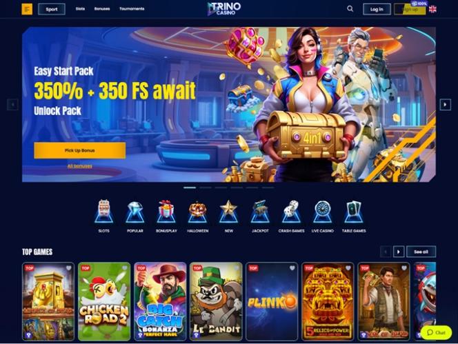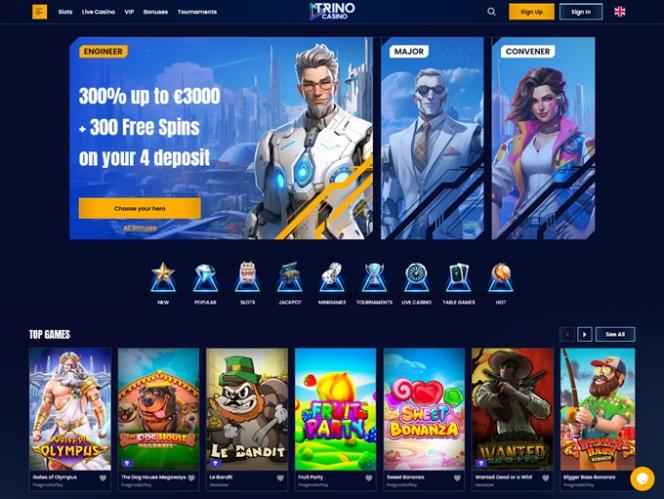 主頁上充斥著有關 Trino Casino 所有功能的大量資訊。在中心區域,您可以了解正在進行的促銷活動、歡迎禮包、VIP 計劃以及所有最熱門和最新的遊戲。此外,該品牌還展示了其錦標賽、最新獲獎者和金幣商店。