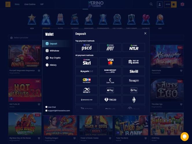 Trino Casino 也不例外,他們已獲得超過 100 家軟體工作室的授權。無論您是哪種類型的玩家,都能在這個平台上找到許多您喜愛的精彩遊戲。