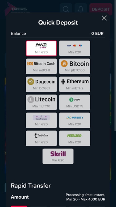 Trips Casino 是一家線上賭場,主要針對來自加拿大、德國、奧地利、義大利、丹麥、紐西蘭和瑞士的賭客。該賭場由一家經驗豐富的公司運營,並持有庫拉索博彩管理委員會的許可證。