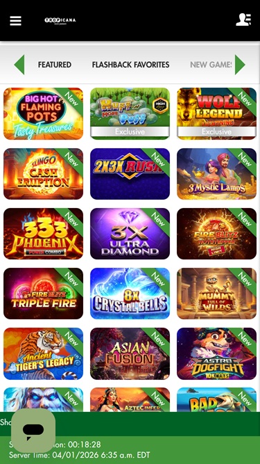 Tropicana Casino 由 Microgaming, Net Entertainment, Barcrest, Big Time Gaming, ELK Studios, Habanero Systems, iSoftBet, lightningboxgames, Novomatic, Oryx, Yggdrasil, Wazdan, IGT, Red Rake Gaming, Spin Games, Triple Edge Studios, Northern Lights Gaming, Stormcraft Studios, All41 Studios, Gameburger Studios, Pulse 8 Studios, Neon Valley Studios, Golden Rock Studios, Shuffle Master, SpinPlay Games, Buck Stakes Entertainment, Design Works Gaming, Games Global, Ainsworth, Bally Technologies, bluberi, Blueprint Gaming, Greentube, NextGen, WMS, Inspired Gaming, Konami, Gaming Realms, SG Interactive, Red7Mobile, Scientific Games, Side City Studios, Foxium, Betdigital, Just For The Win, Incredible Technologies, PearFiction Studios, Wild Streak Gaming, Slingshot Studios, Fortune Factory Studios, 4ThePlayer, Crazy Tooth Studio, High 5 Games, ReelPlay, AGS Interactive, Alchemy Gaming, Snowborn Games, Boomerang Studios, Gold Coin Studios, Lucksome Gaming, RAW iGaming, Wishbone Games, Circular Arrow, HammerTime Games, INO Games, Nailed It! Games, Atomic Slot Lab, Neko Games, Oros Gaming, Indigo Magic and Light & Wonder提供支持,其賭場遊戲透過基於網頁的即時遊戲平台提供,可透過您常用的瀏覽器載入。網站的設計並非最佳,但功能齊全。玩家可以選擇使用行動裝置造訪網站,隨時隨地享受完整的賭場體驗。Baccarat