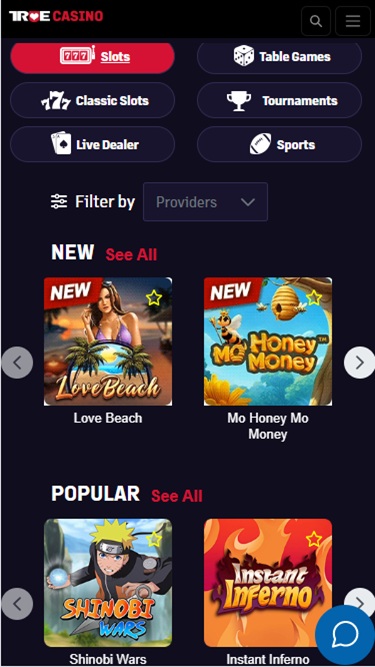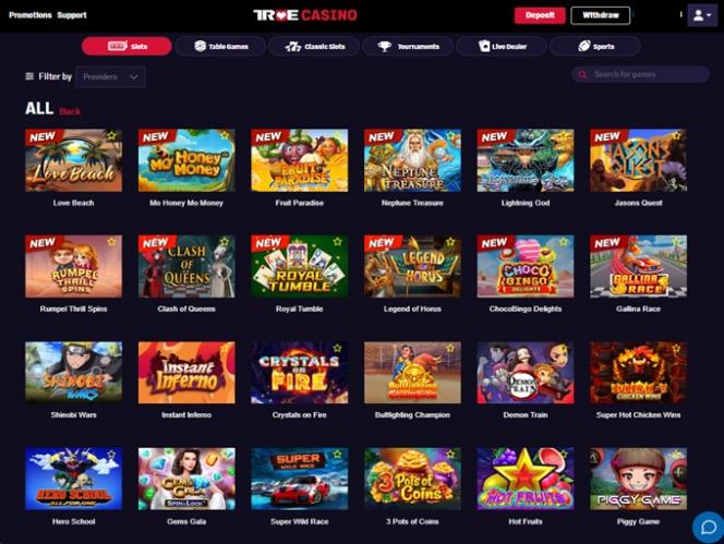 True Poker 的賭場遊戲與多家知名軟體供應商合作,提供豐富的遊戲選擇。其賭場遊戲庫中的知名遊戲包括: