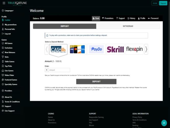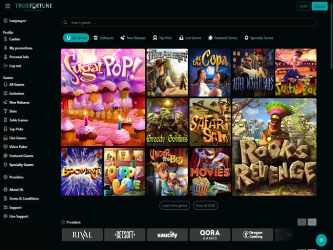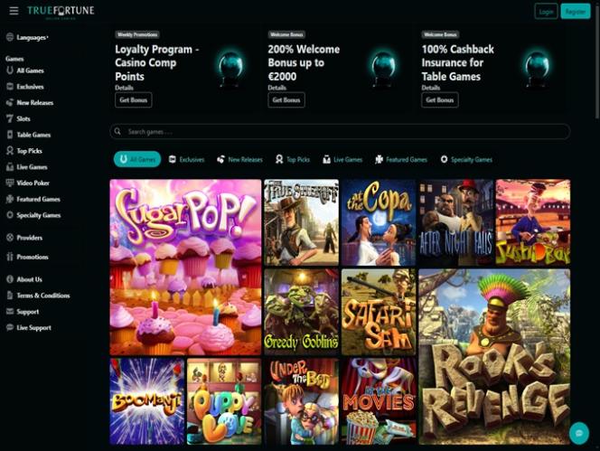 True Fortune Casino 是由 TrueBet 經營的線上博彩網站。該網站於 2020 年上線,面向美國用戶,同時也針對法國、巴西、墨西哥、西班牙和澳洲的用戶。該網站擁有豐富的視訊老虎機遊戲,同時還提供桌上遊戲和完整的真人荷官賭場,以及不錯的銀行服務。雖然 True Fortune 有一些可以改進的地方,但對於身處受限國家的玩家來說,它確實是一個不錯的選擇。賭場資訊