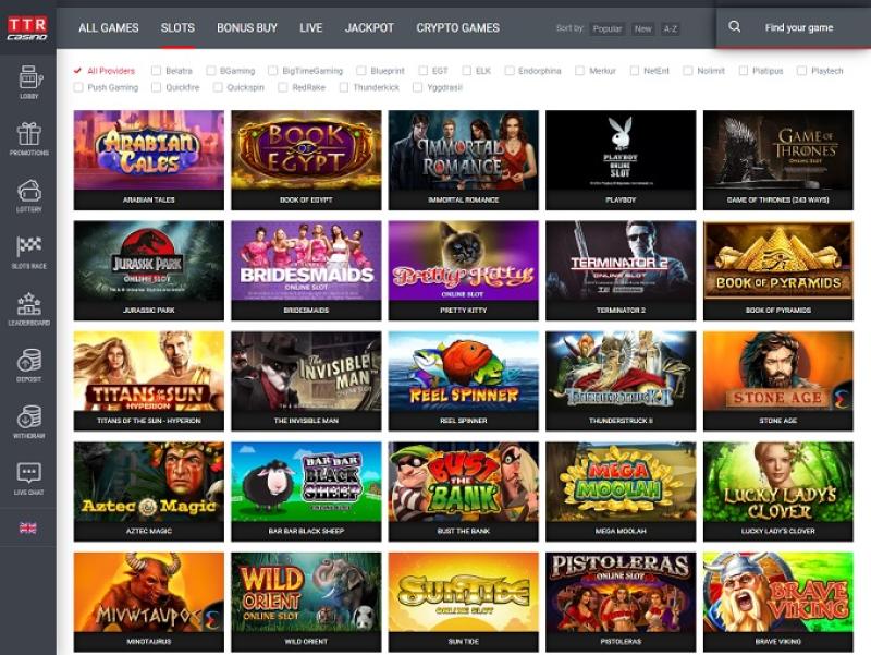 TTR 賭場是一家在庫拉索島營運的線上博彩網站,使用比特幣及其他標準支付方式。賭場擁有豐富的遊戲庫、極快的賠付速度和豐厚的獎金,所有這些都讓 TTR 賭場非常值得一試。
