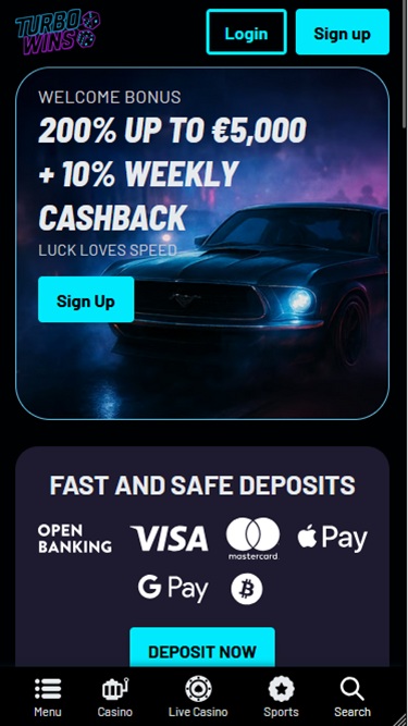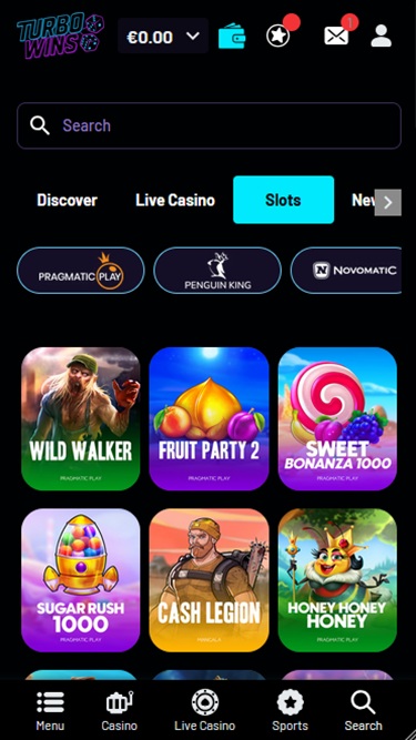 遊戲主要分為兩大板塊:賭場和真人娛樂場,以及體育博彩,適合喜歡探索投注選項的玩家。無論您是從桌上型電腦或任何可攜式裝置存取 Turbo Wins,都能獲得出色的遊戲體驗,因為該賭場針對大螢幕和小螢幕進行了完美最佳化。