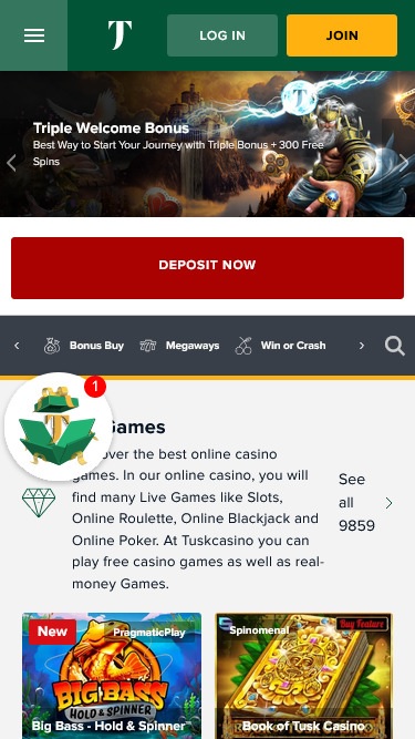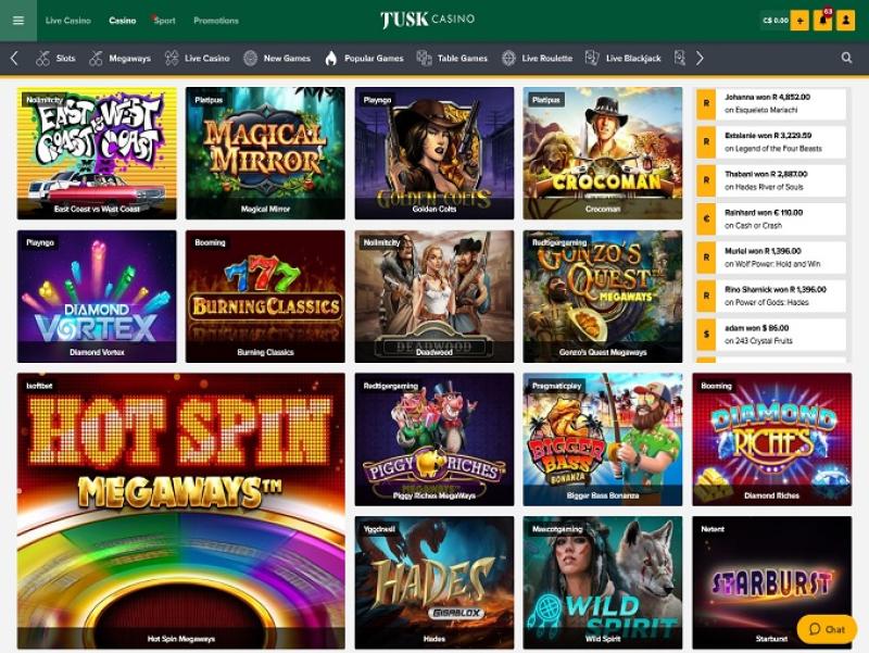 Tusk Casino 由 Microgaming, Net Entertainment, Playtech, BetSoft, 1x2gaming, Amatic Industries, Big Time Gaming, ELK Studios, Evolution Gaming, EYECON, Ezugi, Habanero Systems, iSoftBet, lightningboxgames, Novomatic, Play'n GO, playson, Quickspin, Rabcat, Relax Gaming, Rival, Thunderkick, Vivo Gaming, WM, Yggdrasil, Wazdan, Realistic Games, GameArt, Betgames, Booming Games, Pragmatic Play, Nolimit City, Felt Gaming, Red Tiger Gaming, Booongo, LuckyStreak, Spinomenal, Felix Gaming, Skillzzgaming, Xprogaming, Fugaso, Fantasma Games, Kalamba, Platipus Gaming, Skywind, Spadegaming, Triple Edge Studios, BGAMING, Northern Lights Gaming, Evoplay, Stormcraft Studios, Switch Studios, SA Gaming, Electric Elephant Games, Triple PG, All41 Studios, Gluck Games, CQ9 Gaming, Mascot Gaming, TVBet, Gameburger Studios, Pulse 8 Studios, Slot Factory, Neon Valley Studios, Golden Rock Studios, SpinPlay Games, HungryBear Gaming, KA Gaming, Atmosfera, Real Dealer Studios, GONG Gaming, Blue Guru Games, Caleta Gaming, Spinstars, Games Global, Amusnet Interactive, Wizard Games, Ash Gaming, Blueprint Gaming, Greentube, Igrosoft, Media Live, Merkur Gaming, NeoGames, Pariplay, Push Gaming, Tom Horn Gaming, Spigo, Mr Slotty, Reel Time Gaming, Authentic Gaming, Noble Gaming, Ganapati, Iron Dog Studio, Foxium, Zitro, Just For The Win, We Are Casino, Storm Gaming Technology, PearFiction Studios, Apollo Games, Wild Streak Gaming, Slingshot Studios, Fortune Factory Studios, RubyPlay, 4ThePlayer, AvatarUX, Gamevy, Crazy Tooth Studio, ReelPlay, SlotVision, Alchemy Gaming, Rarestone Gaming, Indi Slots, Black Pudding Games, Snowborn Games, Hacksaw Gaming, Max Win Gaming, SimplePlay, Gold Coin Studios, Gamzix, Half Pixel Studios, Peter And Sons, Aurum Signature Studios, FastSpin, Lucksome Gaming, Area Vegas, Leap Gaming, 3 Oaks Gaming, Wishbone Games, Circular Arrow, Gaming Corps, HammerTime Games, Four Leaf Gaming, INO Games, Nailed It! Games, Neko Games, Reel Kingdom and PlayAce提供支持,網站的遊戲透過網頁平台提供,您可以透過網路瀏覽器載入。該網站設計精良,易於瀏覽,並且內置了移動端支持,因此您可以根據需要在智慧型手機或平板電腦上暢玩。