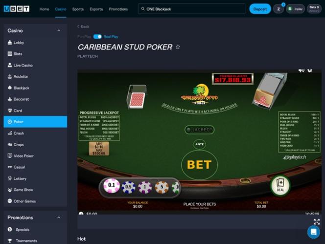 UBET 提供各種遊戲,包括老虎機、真人娛樂場、輪盤、二十一點、百家樂、撲克、骰子遊戲、擲骰子、視頻撲克、休閒彩票、遊戲節目等等。這裡的一切井然有序,導航就像註冊新帳戶一樣簡單。