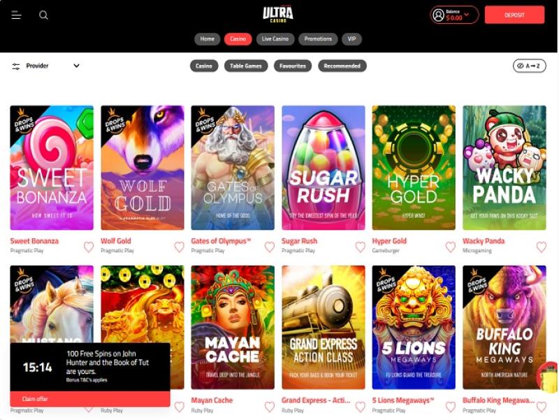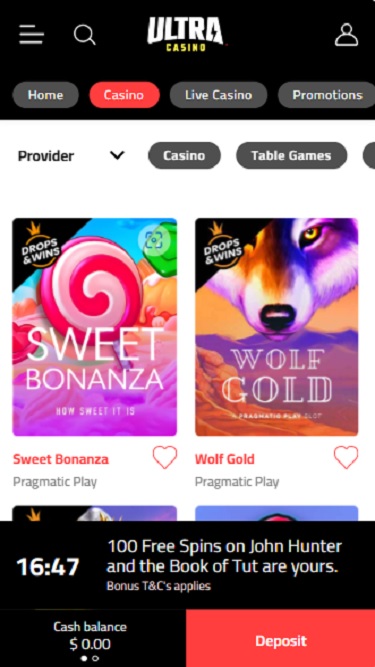 UltraCasino 由 Microgaming, Net Entertainment, BetSoft, 1x2gaming, Big Time Gaming, ELK Studios, Evolution Gaming, lightningboxgames, Oryx, Play'n GO, playson, Quickspin, Rabcat, Relax Gaming, Yggdrasil, Wazdan, Booming Games, Pragmatic Play, Nolimit City, Felt Gaming, Red Tiger Gaming, Fantasma Games, FunFair, Kalamba, Spin Games, Triple Edge Studios, Northern Lights Gaming, Stormcraft Studios, Switch Studios, OneTouch, Electric Elephant Games, Pocket Games Soft, Bulletproof Games, All41 Studios, Gameburger Studios, Pulse 8 Studios, Neon Valley Studios, Golden Rock Studios, Spearhead Studios, Swintt, SpinPlay Games, Real Dealer Studios, Blue Guru Games, Buck Stakes Entertainment, Elysium Studios, Games Global, 2by2 Gaming, bluberi, Push Gaming, Gamomat, Bally Wulff, Iron Dog Studio, Foxium, Just For The Win, Reflex Gaming, PearFiction Studios, Slingshot Studios, Golden Hero, Fortune Factory Studios, RubyPlay, 4ThePlayer, AvatarUX, Crazy Tooth Studio, ReelPlay, Japan Technicals Games, Alchemy Gaming, Black Pudding Games, Snowborn Games, Boomerang Studios, Hacksaw Gaming, Max Win Gaming, Gold Coin Studios, Bang Bang Games, Half Pixel Studios, SilverBack Gaming, Peter And Sons, Eurostar Studios, Aurum Signature Studios, Armadillo Studios, Area Vegas, Leap Gaming, Spribe, Print Studios, Gaming Corps, HammerTime Games, INO Games, Nailed It! Games, Atomic Slot Lab, Neko Games, Oros Gaming and Indigo Magic提供支持,賭場遊戲透過網頁平台提供,可透過您常用的瀏覽器載入。該網站導航便捷,介面美觀,並內建行動裝置支持,方便您在手機或平板電腦上暢玩。Baccarat